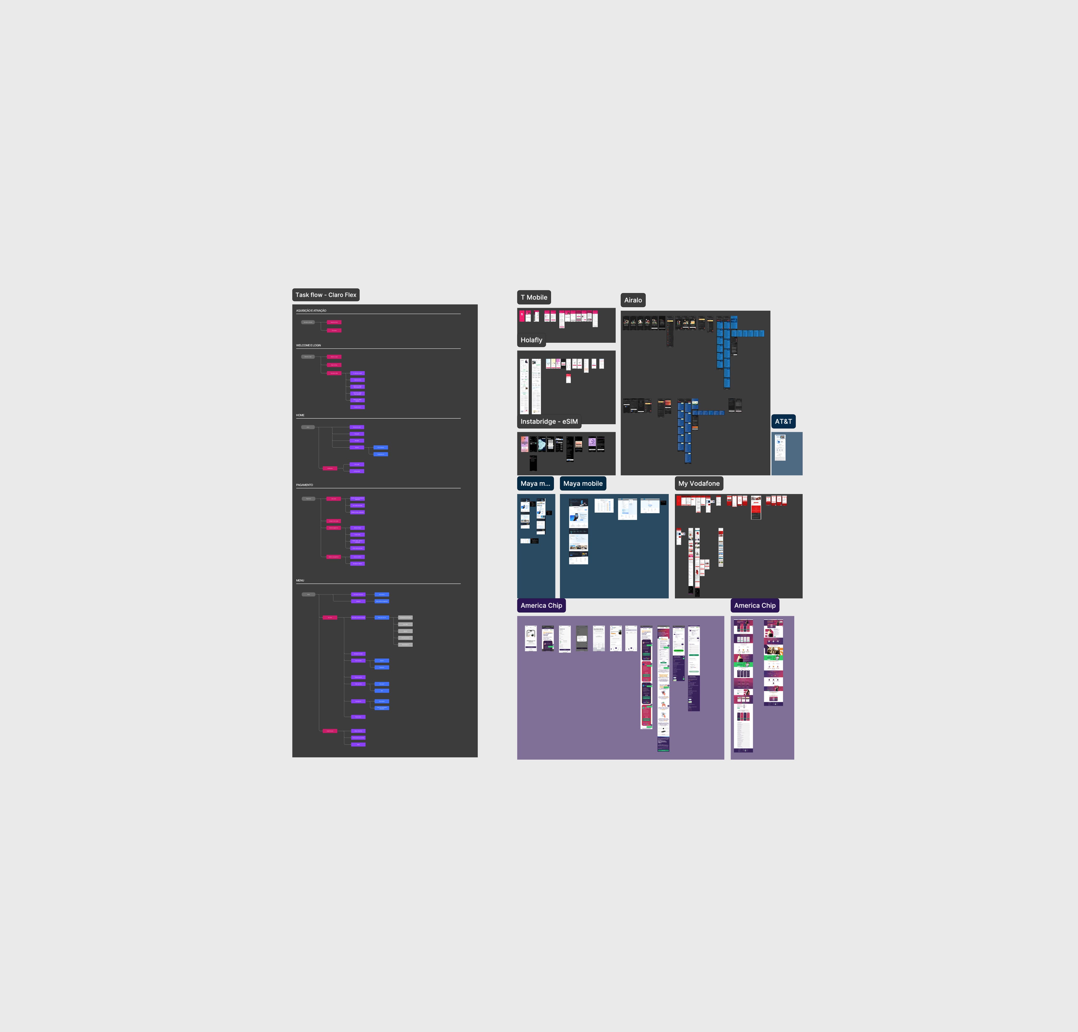 Para fundamentar nossas decisões de design e entender melhor as necessidades dos turistas internacionais. Realizamos um benchmarking de diferentes players globais que oferecem serviços de telefonia móvel para viajantes. Esta análise nos permitiu identificar padrões e melhores práticas no setor: